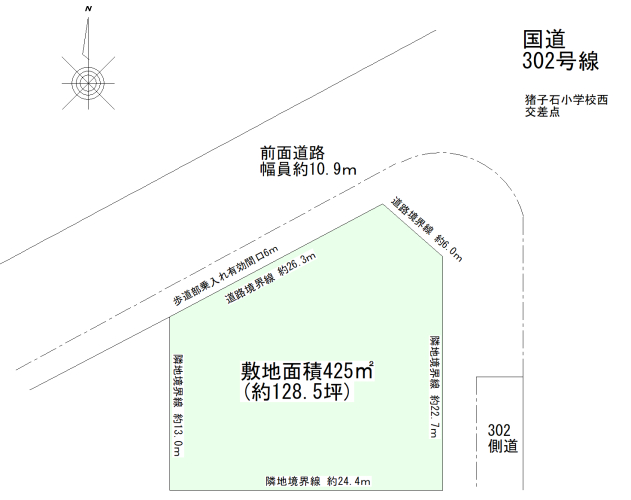 即利用可!!国道302号線 猪子石小学校西交差点角地の貸地です。車両出入口については歩道含む幅員10m市道からのアクセスになり、乗入れ部分は6mの有効間口となっておりますので車種問わないストレスフリーな乗入れが叶うおすすめ物件です♪敷地面積は425㎡(128.5坪)で法面があり平面での有効面積は若干下回ってしまいますが、敷地全体の有効活用に向けた諸工事の提案もさせていただきます♪