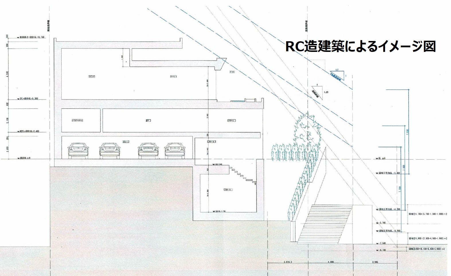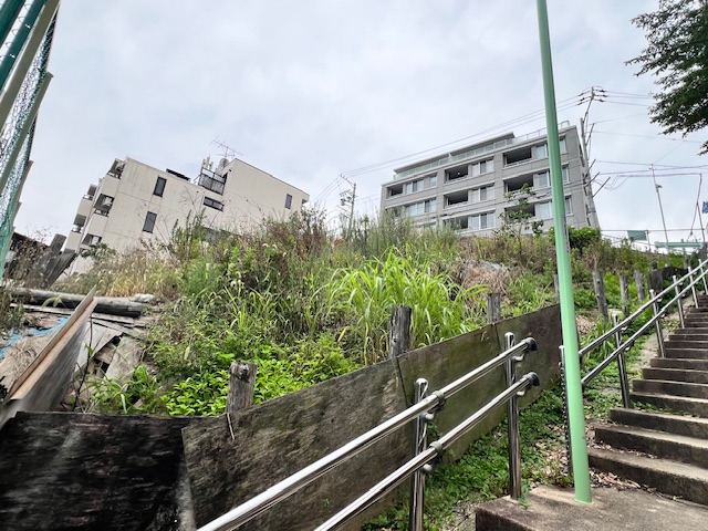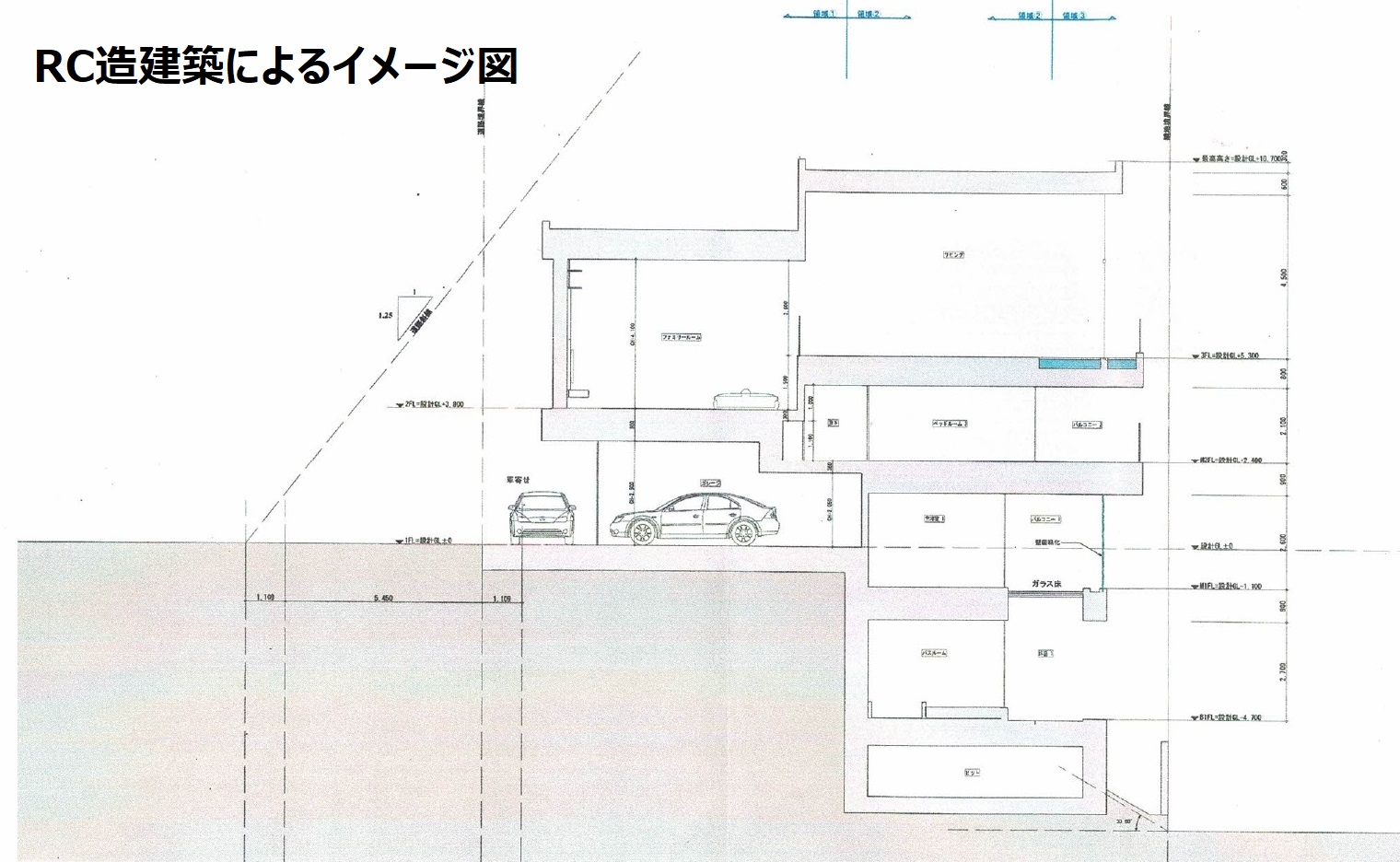 道路から東垂れの傾斜地となっております。この地形を生かした邸宅の設計(建築)事務所も紹介いたします。