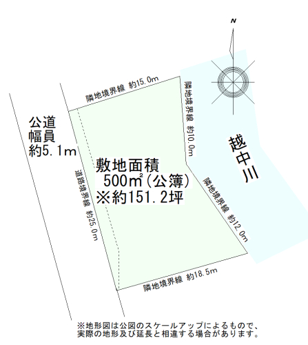 | 方 位 | 西側公道(幅員約5.1mに25m接道) |
